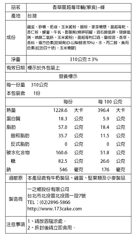 蔓越莓雙色年輪蛋糕X1